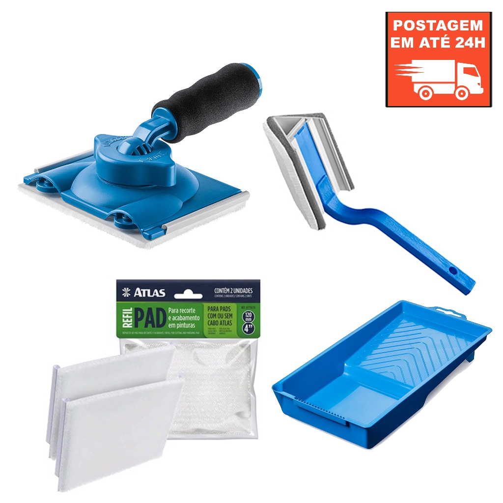 Kit Pad Para Pintura Com Cabo Ajustavel + Pad para Pintura de Cantos + Refil + Bandeja 250ML ATLAS