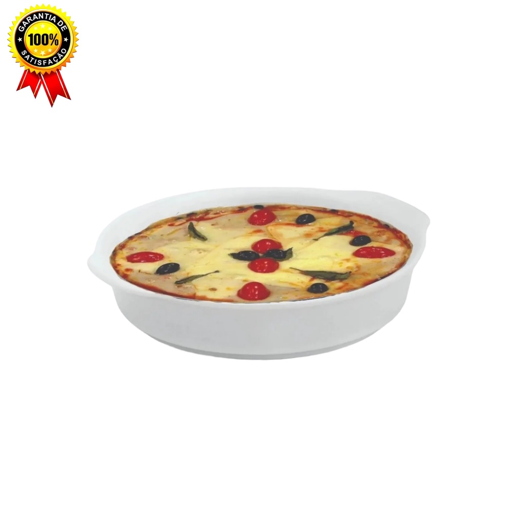 Travessa Redonda 20 Cm Com Alça Lasanha Porcelana Branca Segunda Linha