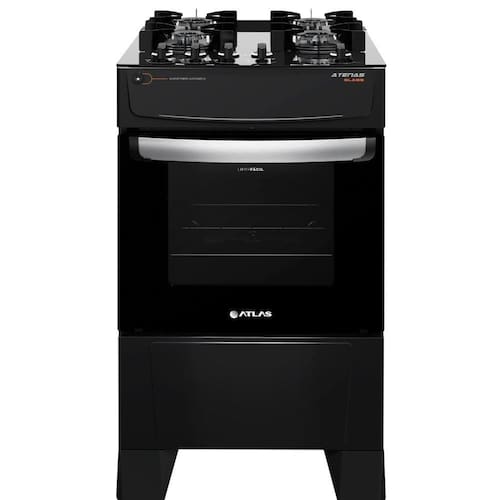 Fogão Atlas 4 Bocas preto Atenas Glass com Acendimento automático - Bivolt