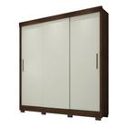 Guarda Roupa Armário Roupeiro Casal MDF 3 Portas de Correr 4 Gavetas Quarto Marrom Madeira Off White