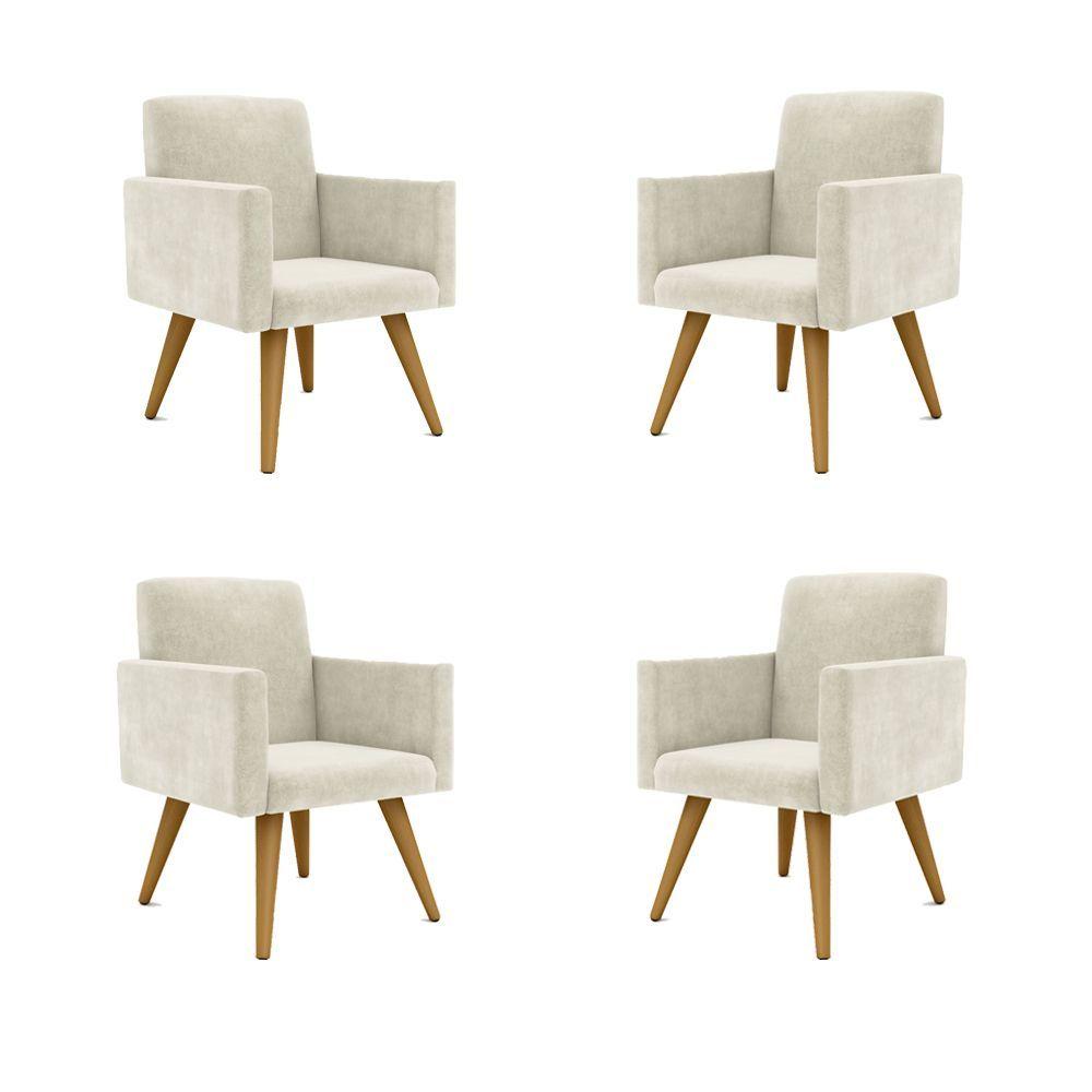 Kit 4 Cadeiras Recepção Poltrona Escritório Bege