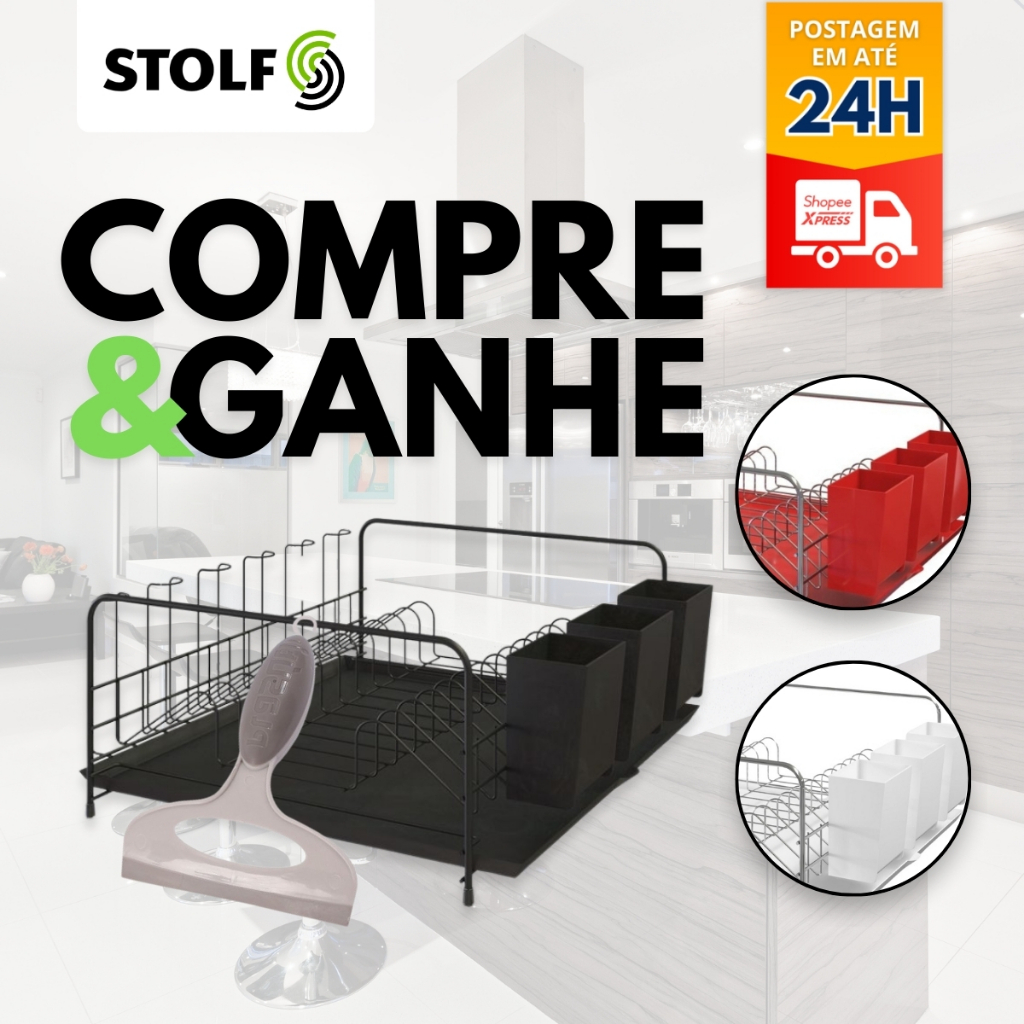 Escorredor De Louça Bali Reforçado com Bandeja para água e Porta Talheres Stolf