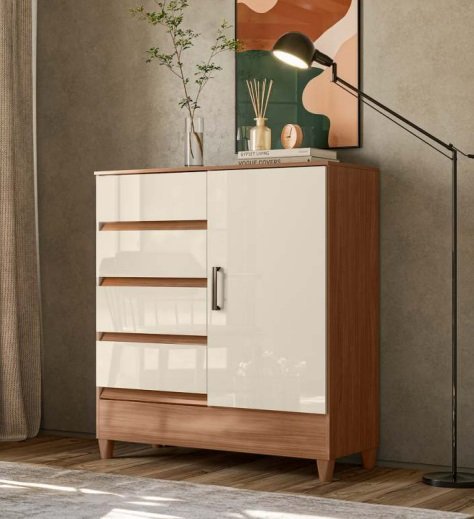 Comoda 1 Porta com 4 Gavetas com Pés Santos Andira Jequitiba / Off White Santos Andirá