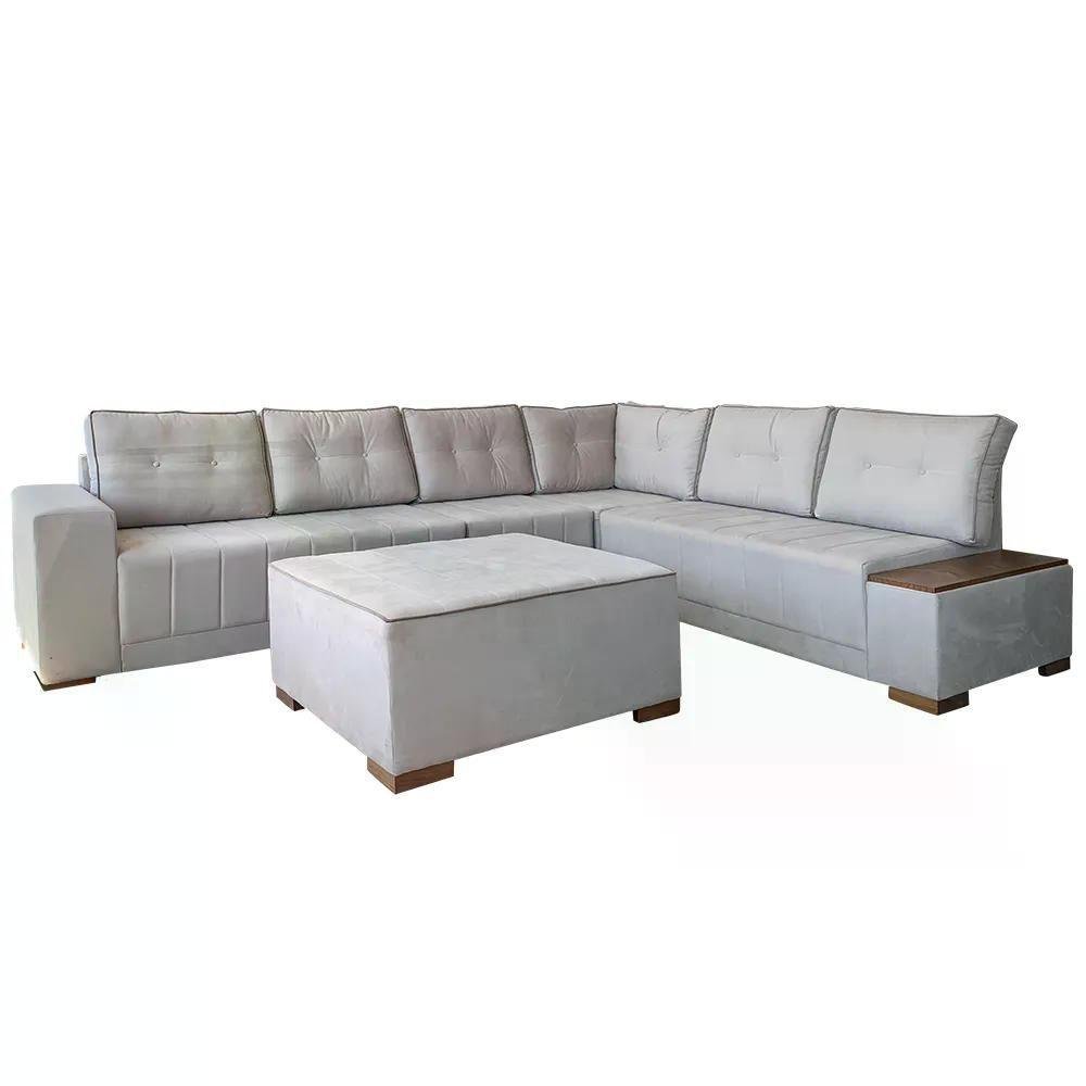 Sofá de Canto Malibu 3,20m X 2,40m com Puff Veludo Bege