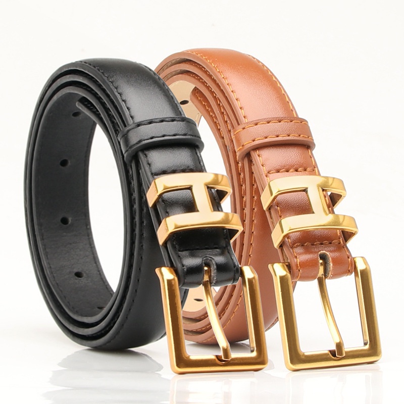 100 % [Frete Grátis] Cinto De Couro Genuíno H Fivela Feminino Ins Fashion Versatile Jeans Belt Simples Vestido Versátil Mini Waist