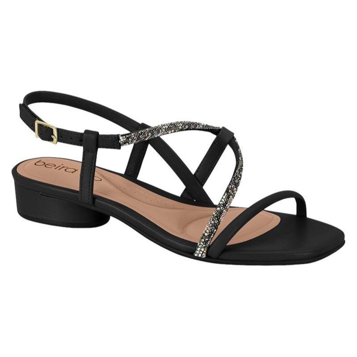 Sandália Beira Rio Tira Com Strass Salto Baixo Feminina