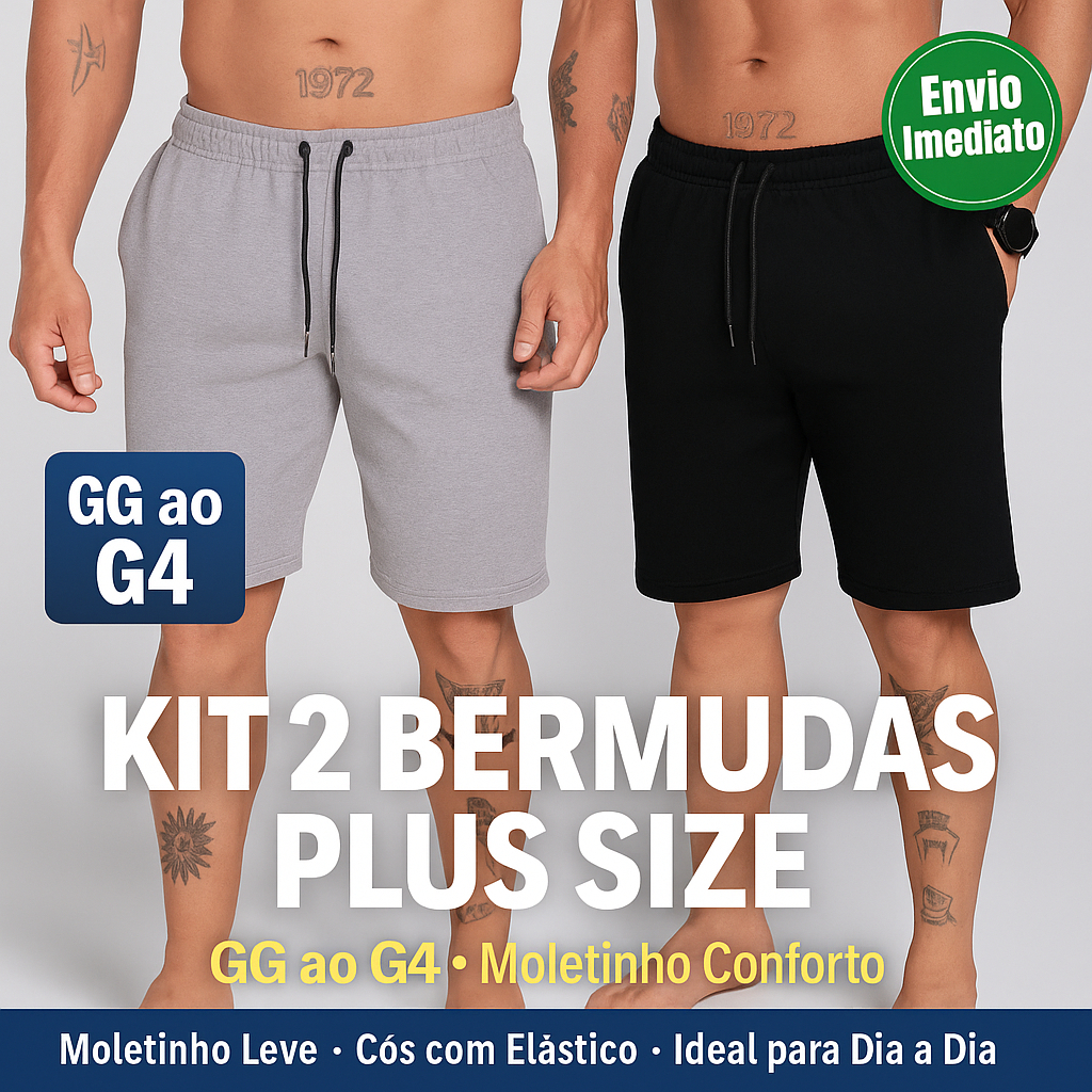 Kit 2 Bermudas Moletom Plus Size Masculina Short Moletinho GG ao G4 Confortavel Calçao Casual Basico