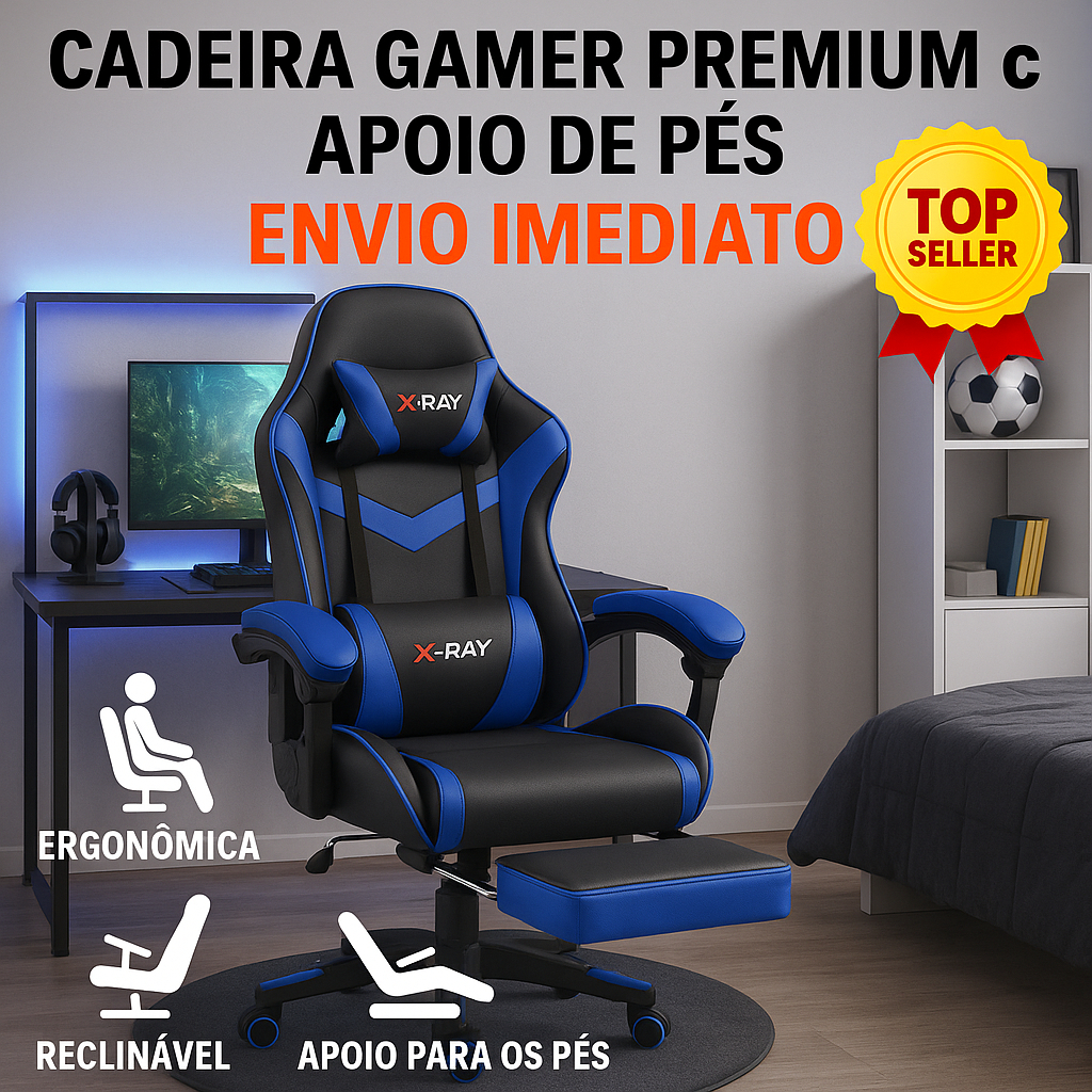Cadeira Gamer X-Ray Ergonômica Reclinável com Apoio de Pés e Almofadas – Conforto Premium