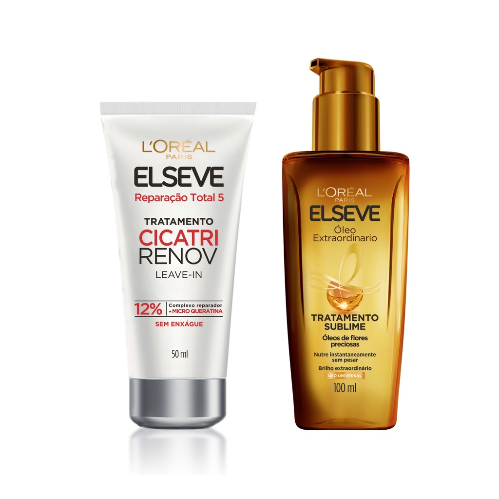 Kit Leave-in de Tratamento Cicatri Renov 50ml + Óleo Extraordinario para Cabelos Elseve Loreal Paris 100ml