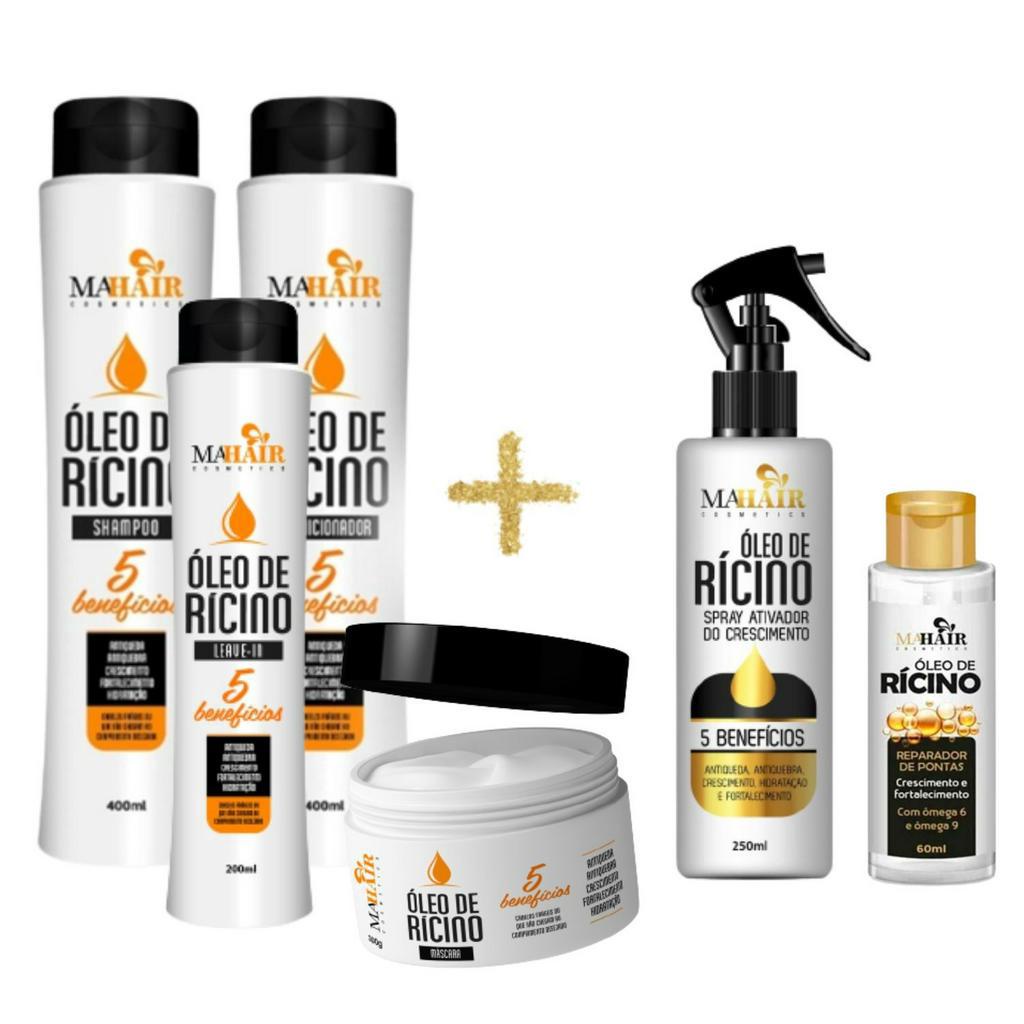 Kit Capilar Óleo de Rícino - 6 Produtos (Shampoo, Condicionador, Máscara, leave-in, Finalizador e Reparador)