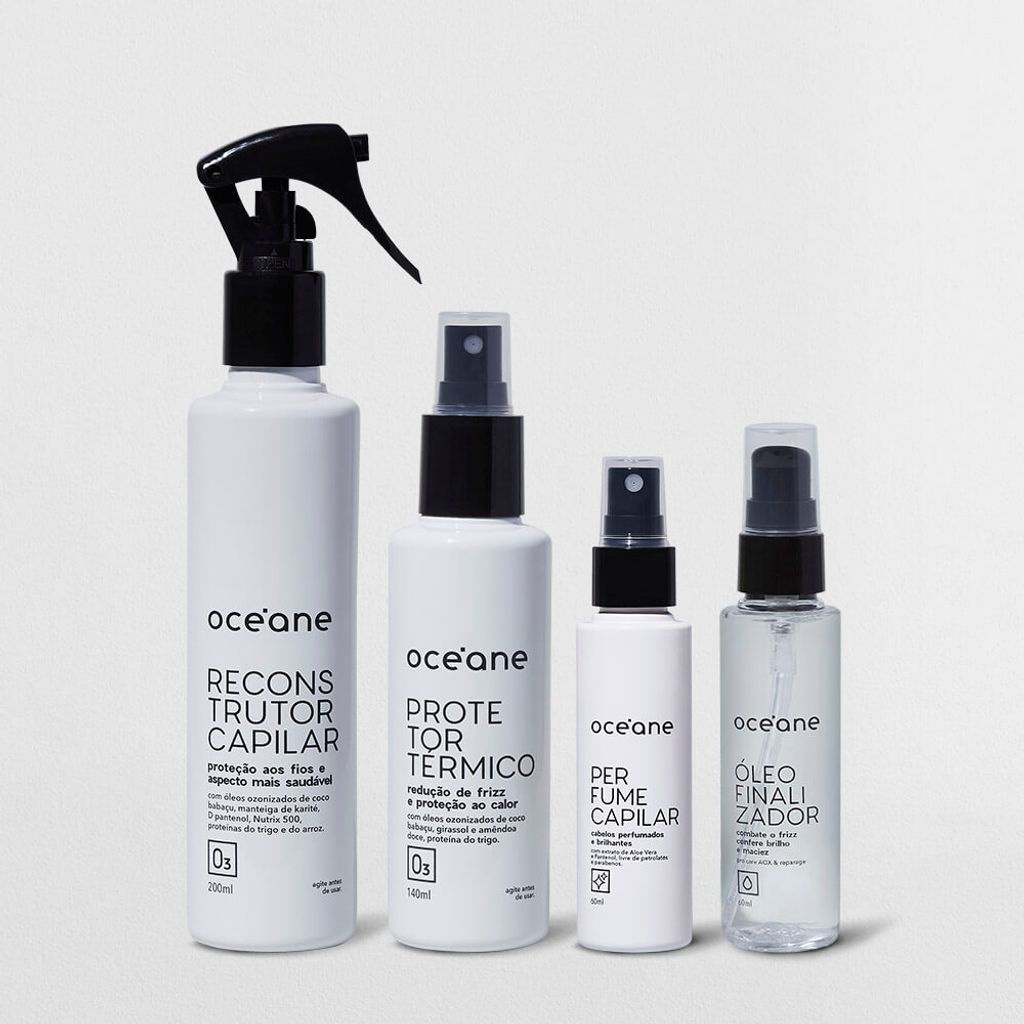 Kit Cabelo de Salão - Reconstrutor + Protetor Térmico + Óleo Finalizador + Perfume (4 Produtos)