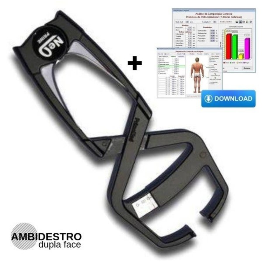 Adipômetro Clínico Neo Preto Prime Med Com Software Physical Test 2.98
