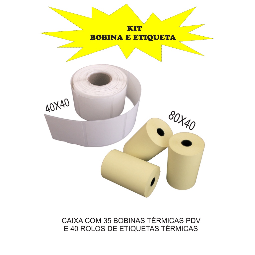 Kit Bobina Pdv 80x40 35 Rolos + 40 Etiqueta Térmica 40x40