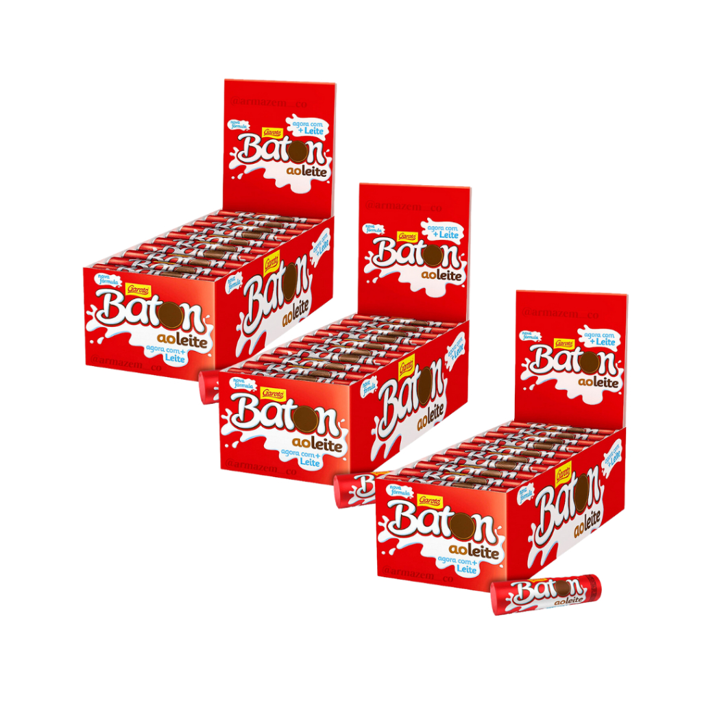 Kit 3 Caixas Baton Ao Leite Chocolate Garoto 90 unid.