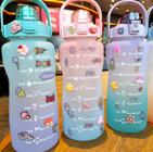 Garrafa de Água 2 L, 1L Degradê c/ Adesivos Fofo 3D e 2D Colorido com Frases Motivacionais e Alça com suporte de Celular Squeeze Garrafinha 750ml com Bico ou Canudo para Beber Academia Caminhada e Passeios Portátil