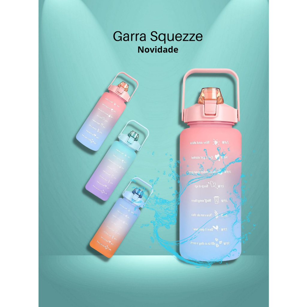 Kit Garrafa de Agua Motivacional Squeeze Galao 2 Litros Academia Agua Escolar + Garrafinha 1 Litro