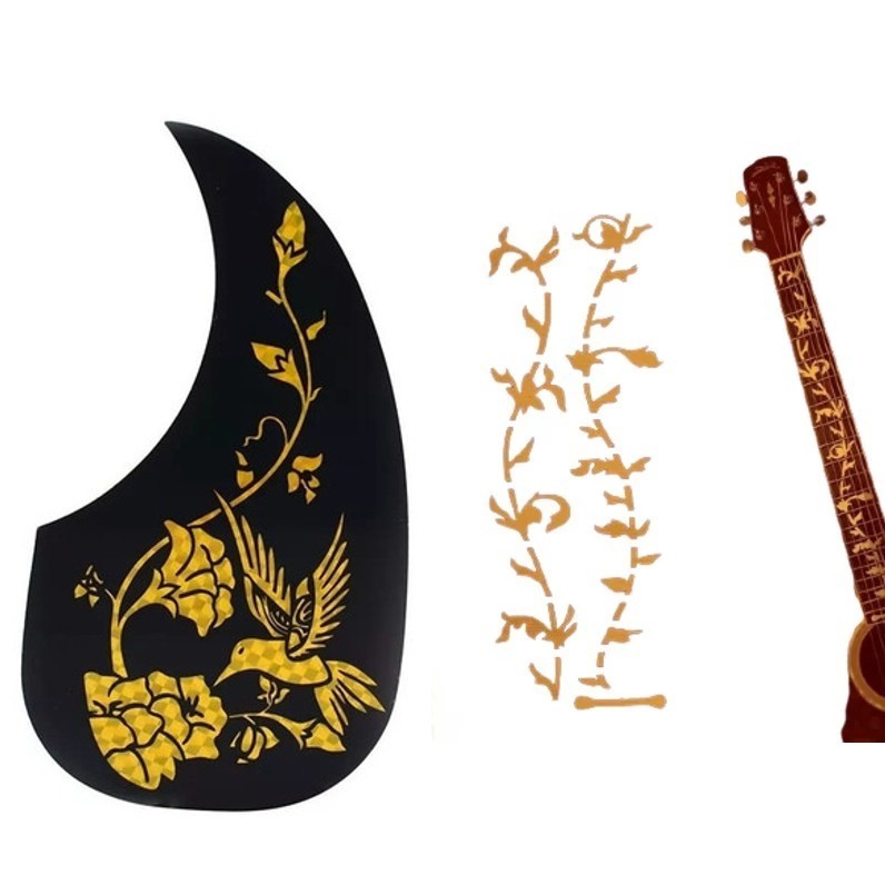 Adesivo Marcador De Escala Steve Vai Floral Dourado Guitarra + Escudo Gota Beija Flor Dourado