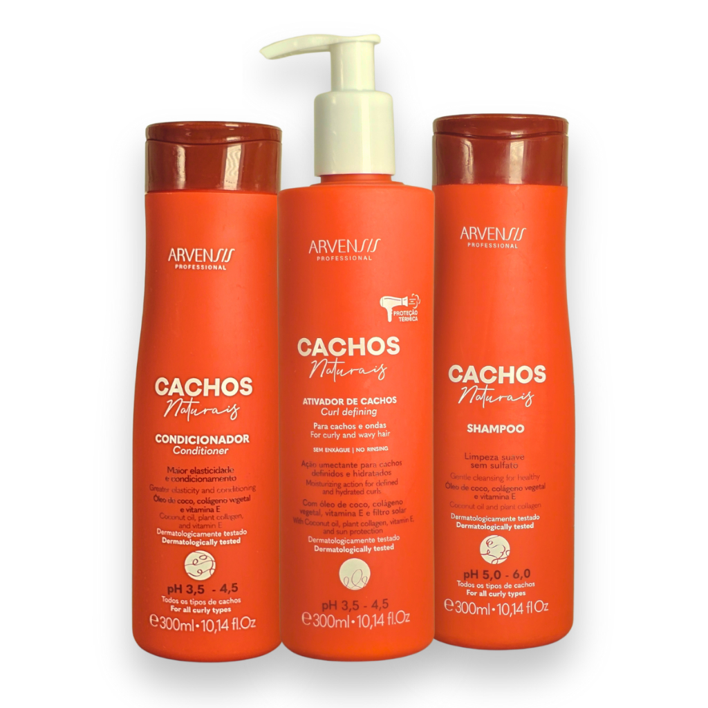 Kit Cachos Deslumbrantes: Shampoo, Ativador para Ondulados e Cacheados, e Condicionador Arvensis