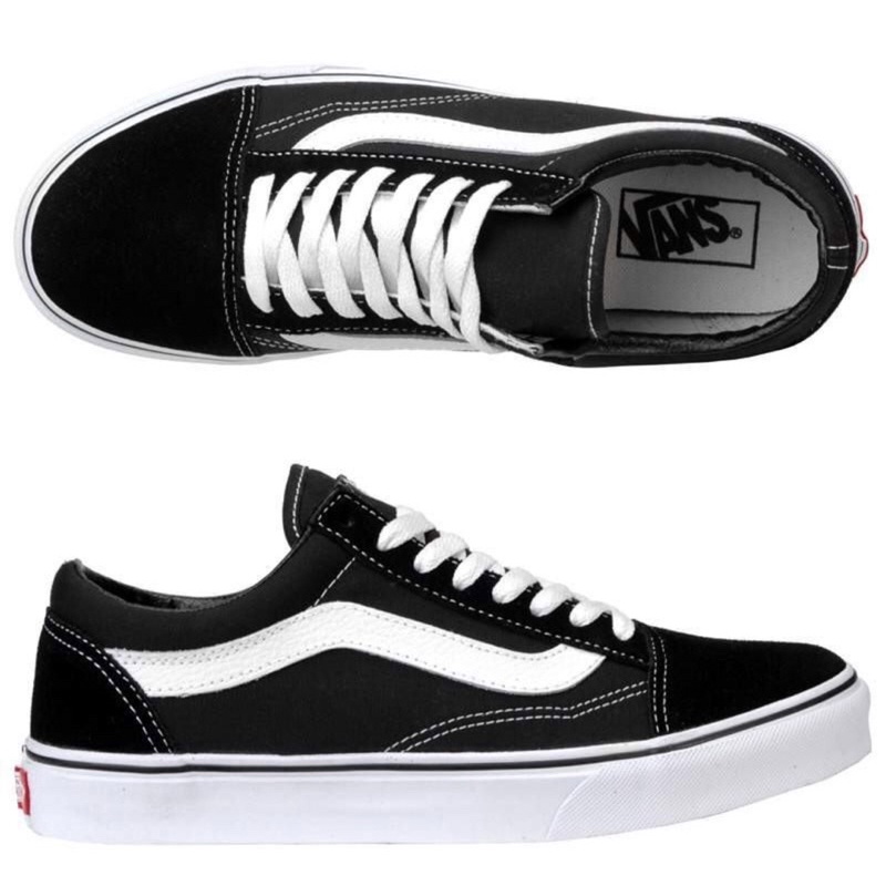 Tênis Vans Skatista Tradicional Casual Preto com Branco Unissex Old Skool