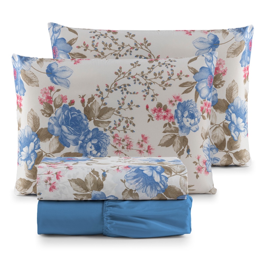 Jogo de Lençol Essencialle Casal Padrão 4 peças Cama Box Algodão/Poliéster