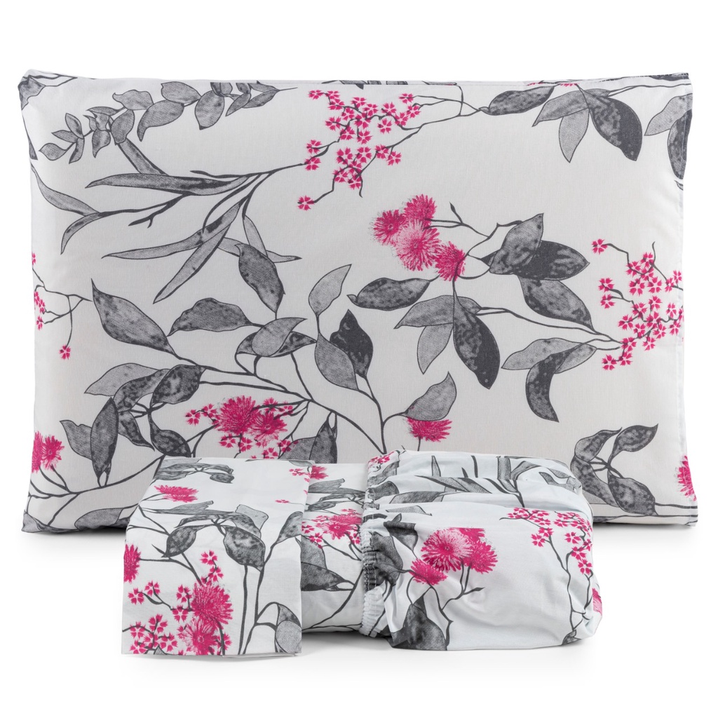 Jogo de Lençol Casal Padrão 03 Peças Percal 180 Fios Algodão com Elástico Cama Box Macio Estampado