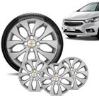 Jogo 4 Calota Chevrolet GM Onix 2013 14 15 16 Aro 14 Prata Emblema Prata