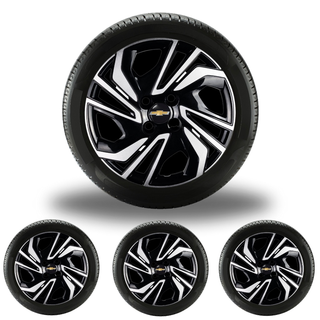Jogo 4 Calota Chevrolet gm Onix 2013 14 15 16 Aro 14 Prata Emblema Preto