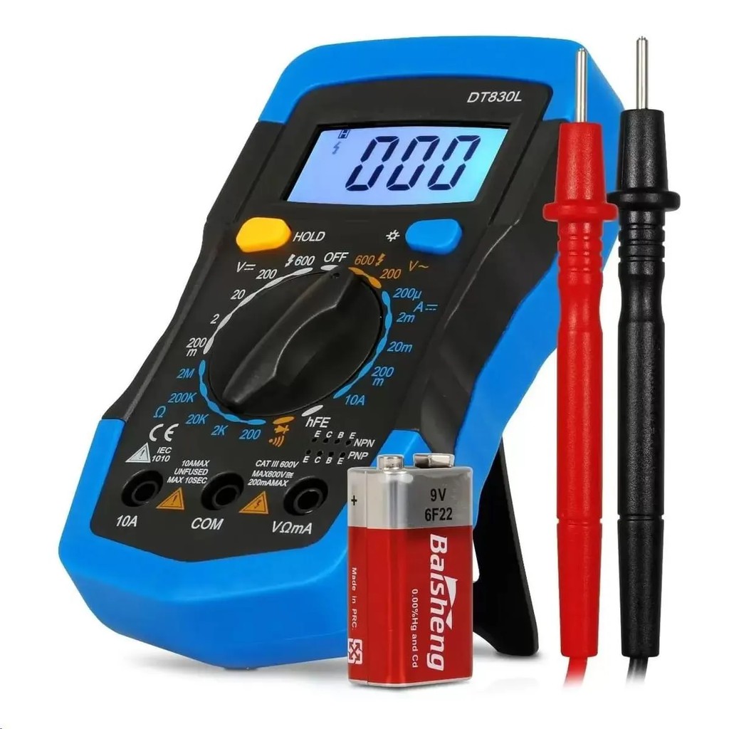 Multímetro Digital DT830 Profissional Com Bateria e Cabo Teste Portátil DC/AC/Diodo/Transitor Alta Precisão 1unidade avulsa