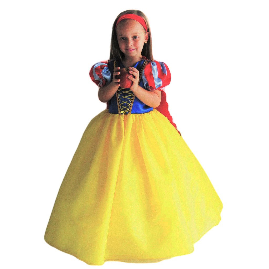 Vestido Longo Fantasia Princesa Branca de Neve com Capa Festa Clássico Luxo Maça Master