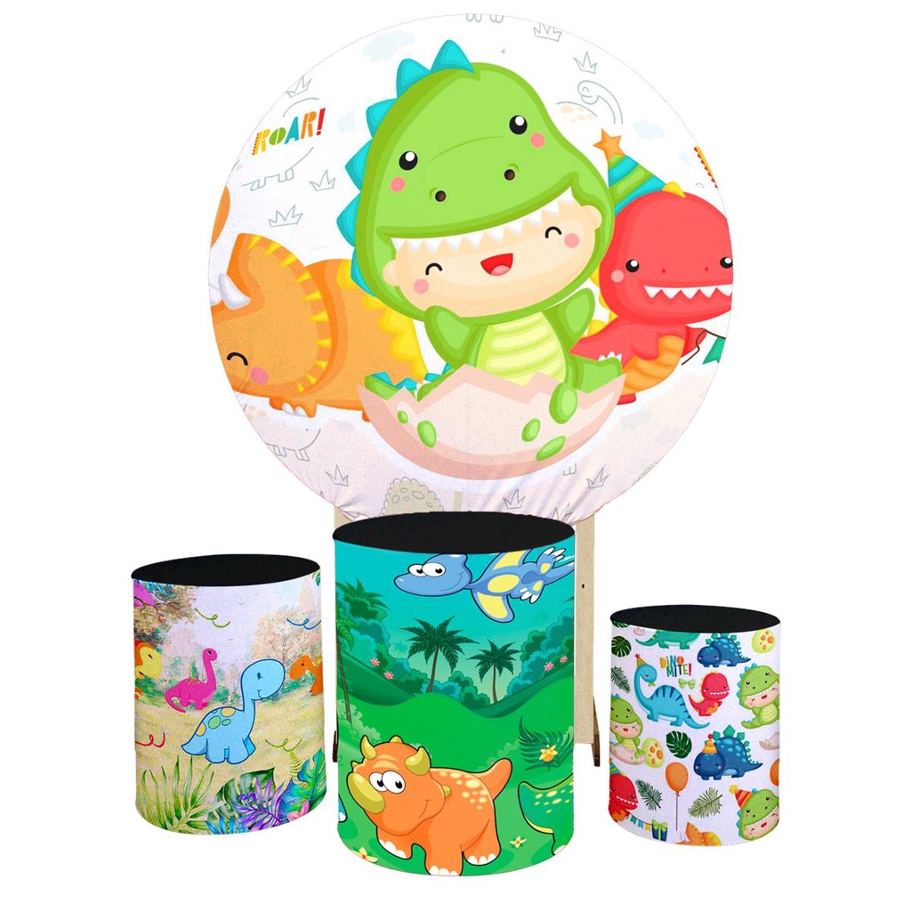 Kit Capas Baby Dino Painel Redondo 1,50 + Trio Cilindros Festa Infantil Decoração