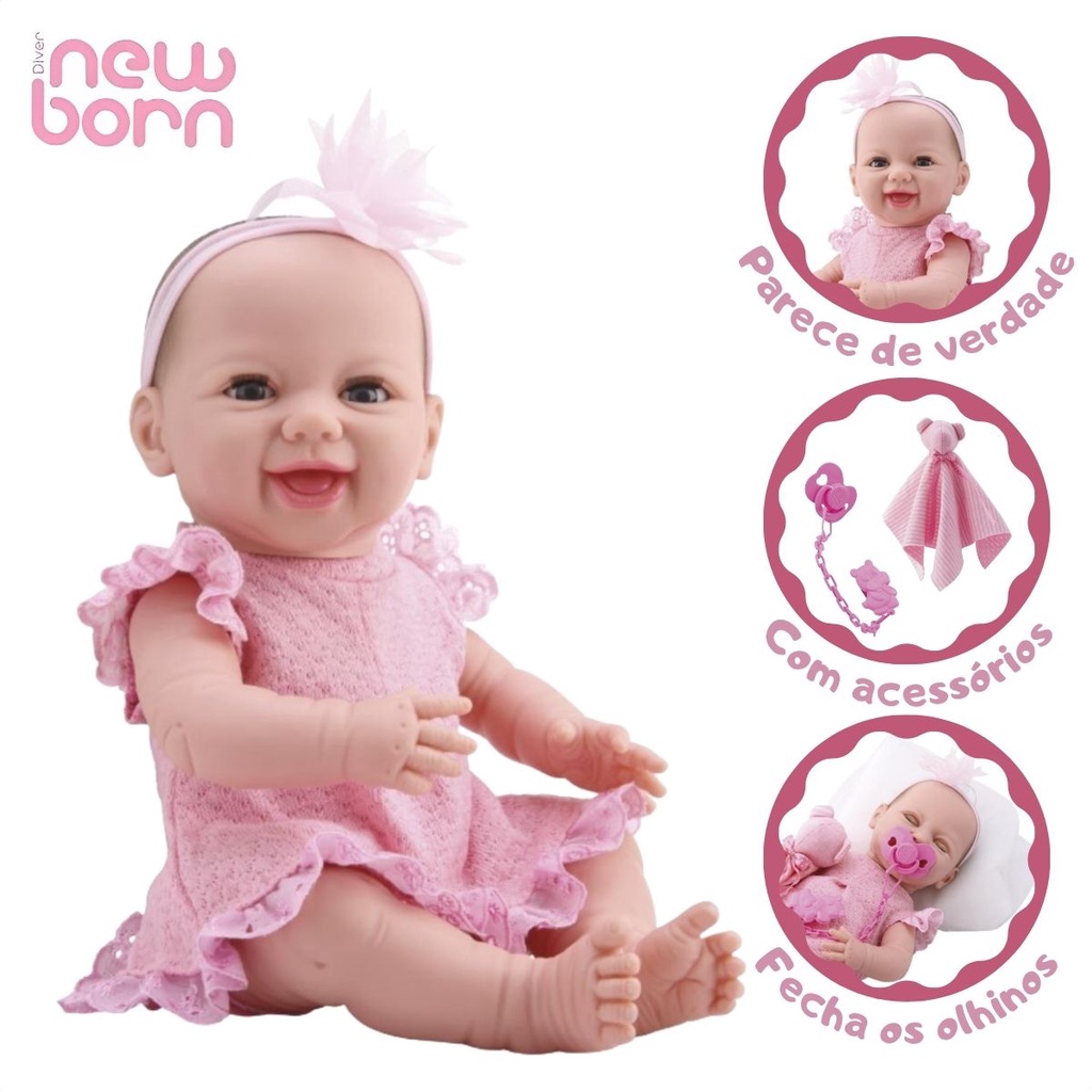 Boneca bebê reborn diver new born vamos brincar divertoys