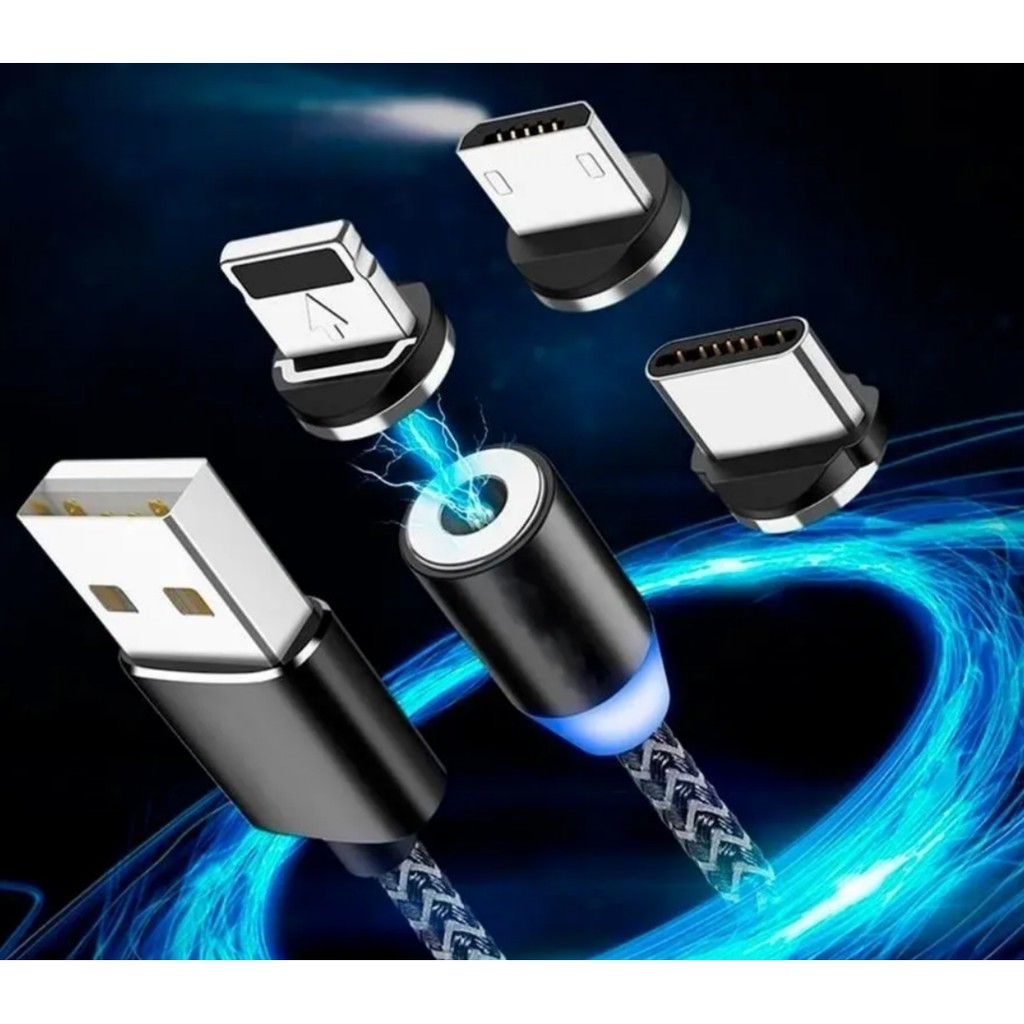 Cabo Carregador Magnético Usb 3 Em 1 Tipo C/ Led Ios Android
