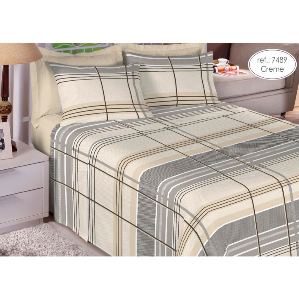 Jogo de Lençol Queen 4 Peças Percal 200 Fios 100% Algodão Ponto Palito - Linda Casa