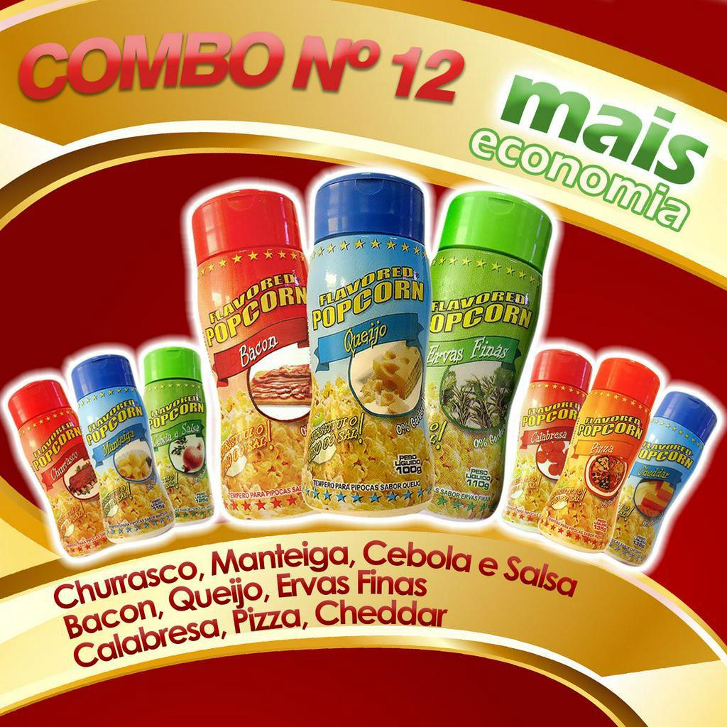 Combo Popcorn nº 12 - 09 Temperos - Cebola e Salsa, Churrasco, Manteiga, Queijo, Ervas finas, Bacon