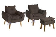Kit 02 Poltrona Decorativa com Puff Glamour Opala Confortável Com Pés Quadrado - SMF Decor