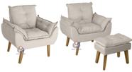 Kit 02 Poltrona Decorativa e Puff Opala Bege Claro com fibra de silicone e pés quadrado SMF DECOR