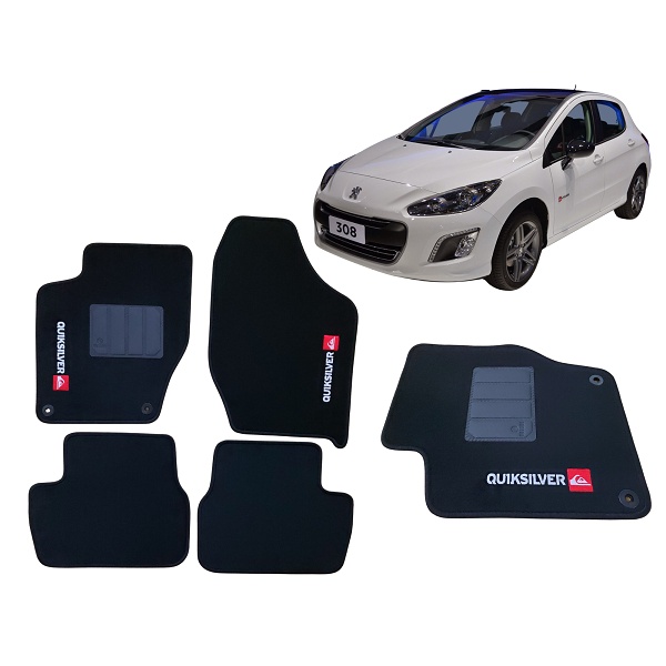 JOGO TAPETE EM CARPETE PEUGEOT 308 QUIKSILVER 2014 2015 5MM BASE DE PVC, COSTURA OVERLOCK, NÃO DOBRA AS PONTAS