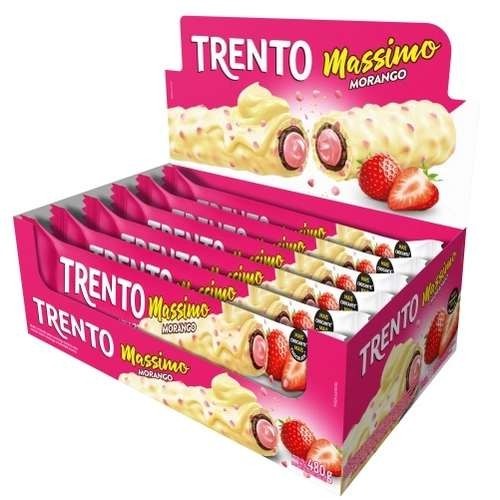 Chocolate Trento Massimo Choc Branco C/ Morango Caixa 16 Uni 30g