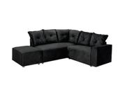 Sofá de Canto 5040 com 5 Lugares e Puff Grande de Tecido Suede Cor Preto