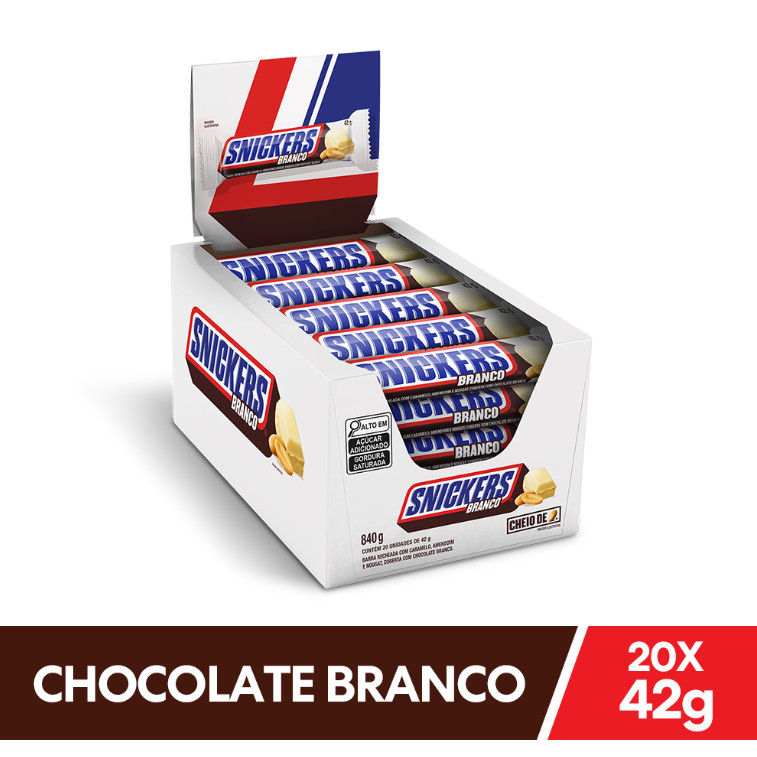 Barra de chocolate branco caixa com 20 unidades com 42g - Snickers