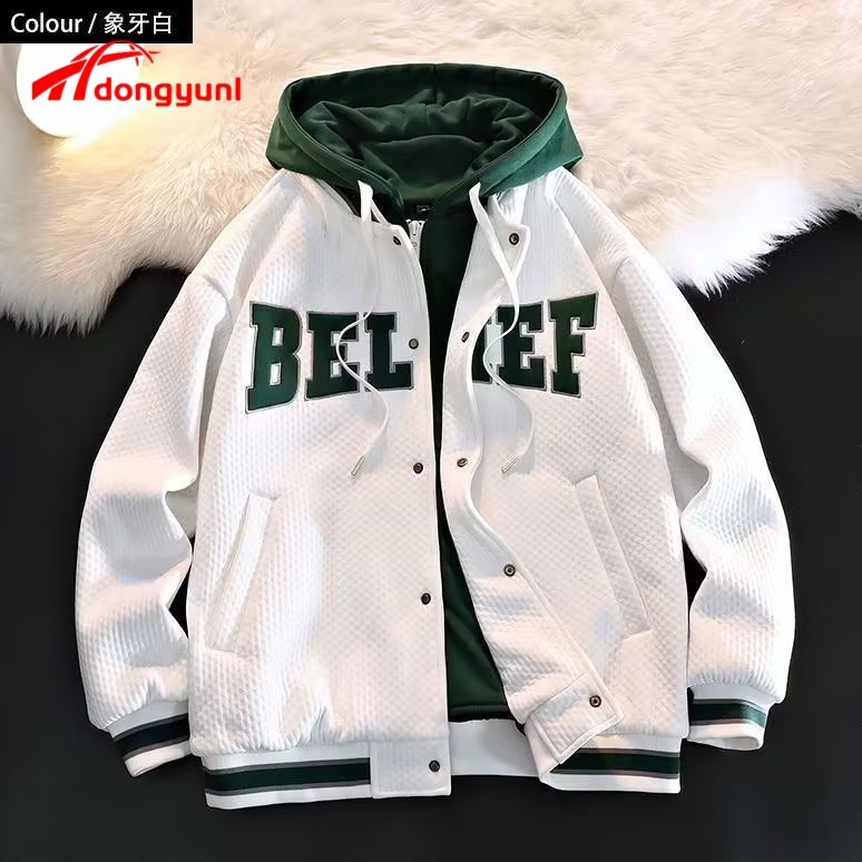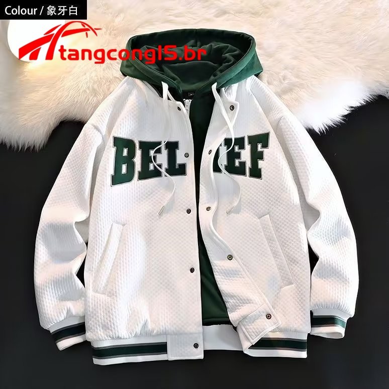 Jaqueta college masculina Fato De Beisebol Com Capuz 2 Em 1 Casaco