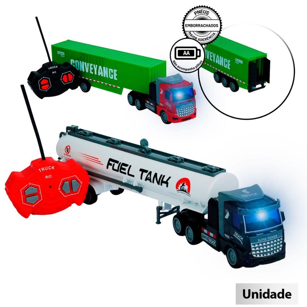 Caminhão de Carga Tanque Controle Remoto Brinquedo com Luz Bateria e Carregador USB