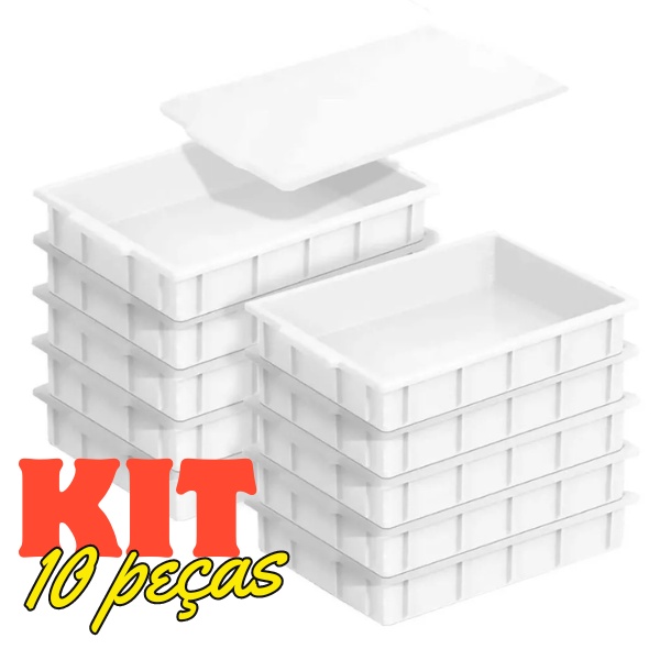 Kit 10 Caixa Bandeja Plastica Panificadora Açougue 7 Litros com 1 Tampa