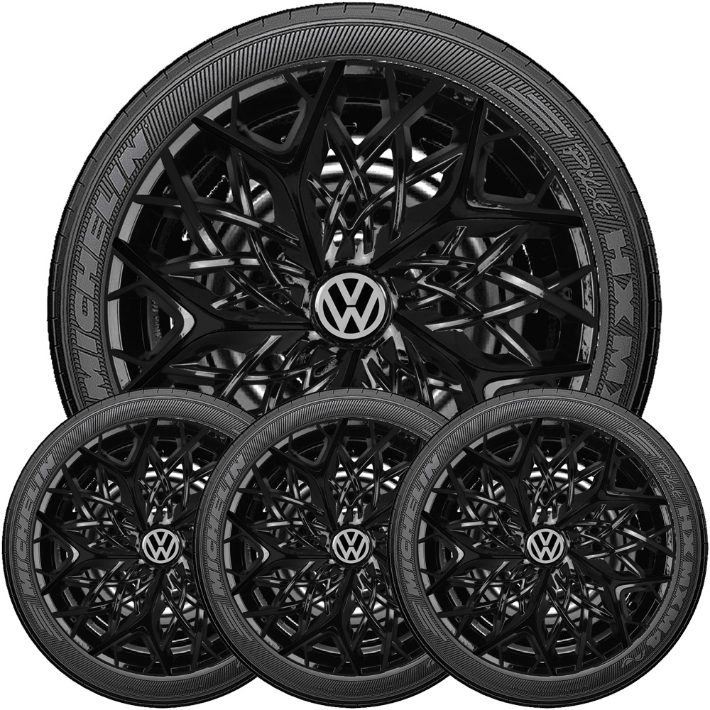 Jogo 4 Calotas Velox Aro 14 Preta Vw Gol G1 G2 G3 G4 G5 G6 G7 Up! Saveiro Fox Polo