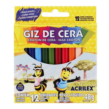 Giz De Cera Estojo Com 12 Cores Acrilex