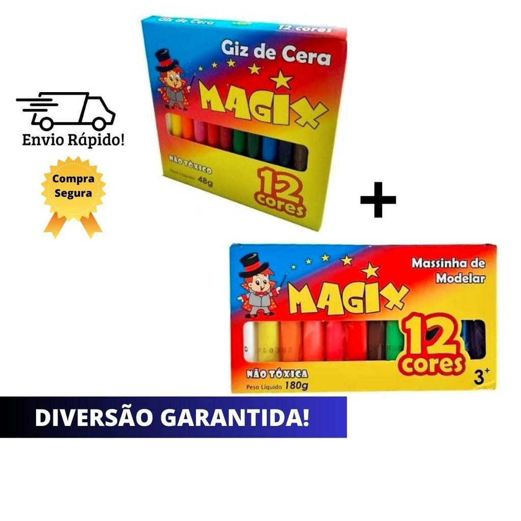 Massinha de Modelar 12 Cores 180g e Giz de Cera com 12 cores 48g Magix - Escolar / Diversão / Criatividade
