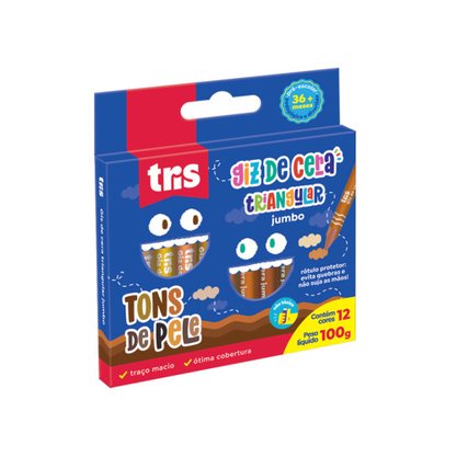 Giz de Cera triangular Jumbo Tons de Pele com 12 Cores TRIS