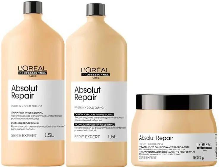 Kit loreal absolut repair gold quinoa shampoo e condicionador 1500 ml e máscara 500 gr