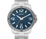 Relogio Orient Masculino prata fundo azul com calendário MBSS1419 D2SX