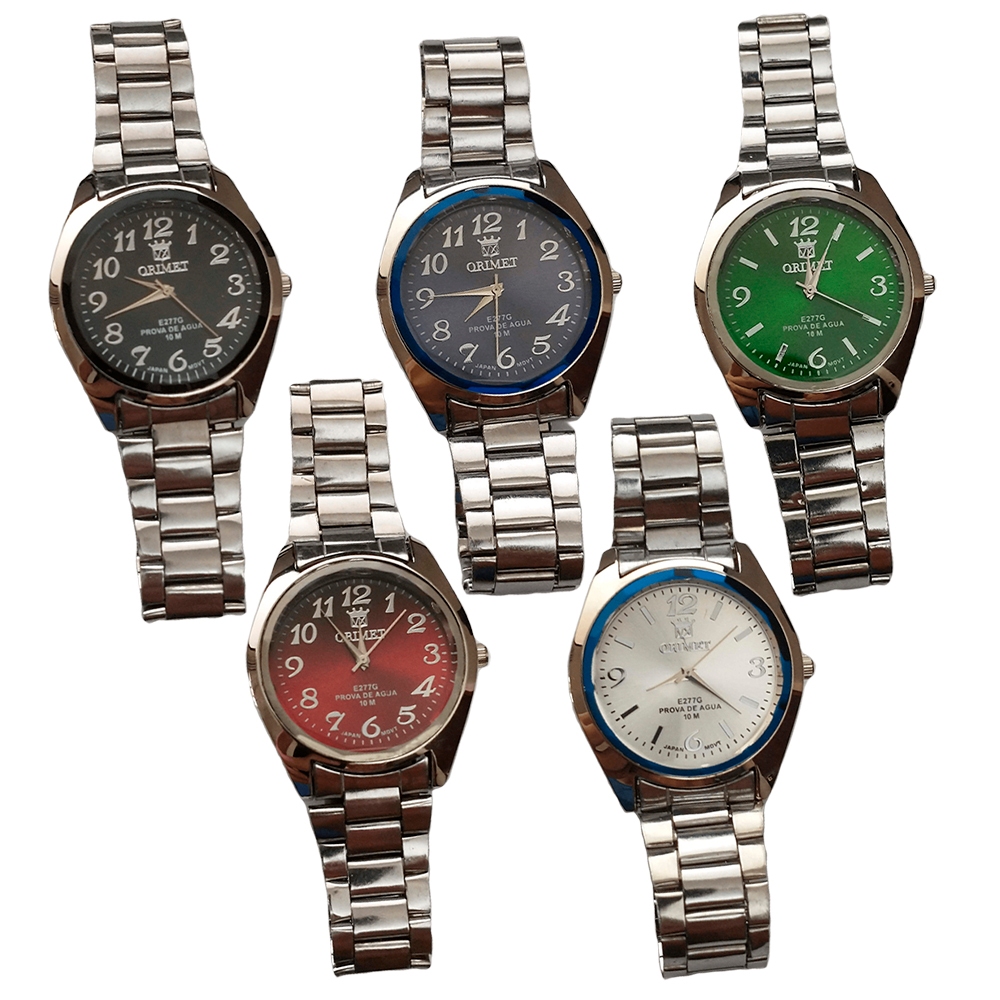Relógio Masculino Kit com 3 Orient Prata Fundo Azul Branco Verde Relógio Orient